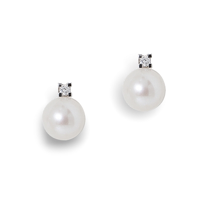Orecchini in Oro Bianco 18 KT. 750 Mill. Perle mm. 7,5-8 Diamanti Kt. 0.06
