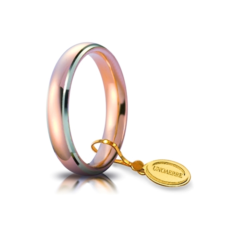 Fede UNOAERRE Oro Bicolore 18 Kt. 750 Mod. Comoda Rosa bordi Bianchi Rodiati